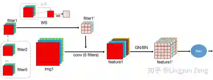 常见的normalization方式(e.g. BN,LN,IN,GN)都是从激活函数的输入来考虑,以不同的方式对激活函数的输入进行标准化;WS则想,我们这么费心费力地去处理卷积后的结果来加速训练,那为什么不直接去处理这个卷积的weight呢。最后实验表明,确实直接向weight下手对速度的影响更加直观。同时,直接处理weight,也很好地规避了对batch size的依赖,使得真正的mini batch size成为可能。