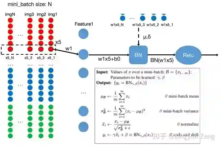 BN,batch normalization,即是对batch进行归一化。如图所示,一个batch取N张图片。
