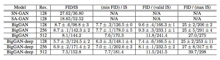该论文一经发布,就引起了著名人工智能学者 Oriol Vinyals、Ian Goodfellow 的关注。11 月,ICLR 2019 的论文评审结果出炉,这篇 BigGAN 论文获得了 8、7、10 的评分。BigGAN 的原版在 ImageNet 数据集下 Inception Score 竟然比此前最好 GAN 模型 SAGAN 提高了 100 多分(接近 2 倍)!