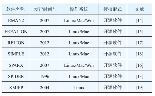 表1 冷冻电镜中流行的图像处理软件