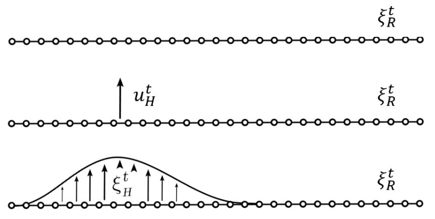 但是,人类的偏好轨迹 ξH 又是什么呢?机器人仅仅会直接测量人类施加的力 uH。一种用来推理人类偏好轨迹的方式是在机器人的当前轨迹上传播人类的力。图 1 建立了基于 Losey 和 O'Malley 之前的工作的轨迹形变,开始于机器人的原始轨迹,然后施加外力,然后施加形变以产生 ξH。