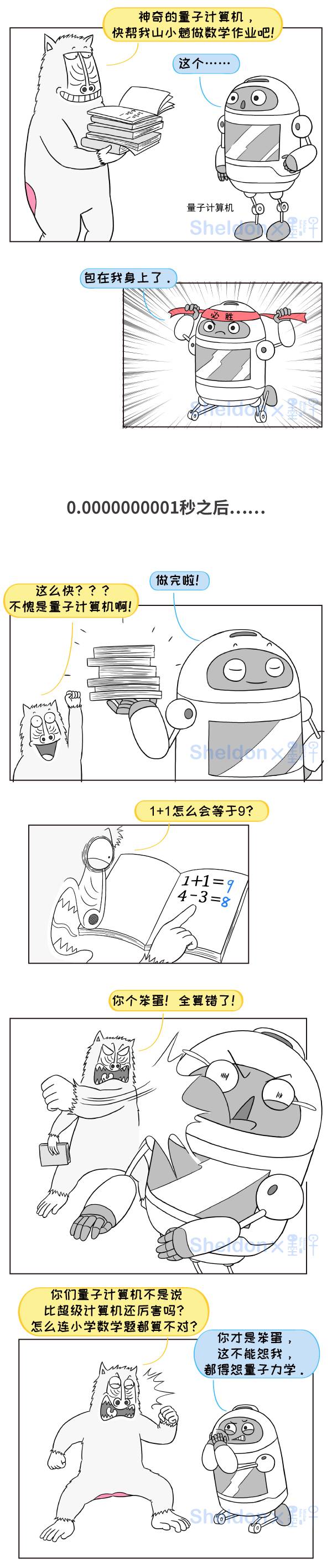 想想看,物理学家常常让1个粒子携带1个量子比特,而我们周围的环境里动不动就是有10²³个粒子,随便让其中一个粒子撞一下,量子计算可能就出错了。就算将粒子周围的环境抽成真空,再降低到绝对零度附近,环境里还是会有大量的粒子,它们想要干扰1个粒子的运动还是太容易了。于是,量子比特只要稍微受到一点儿干扰,整个运算就会出错了。
