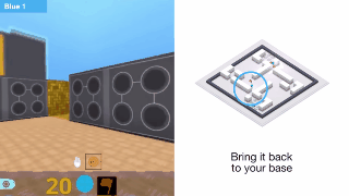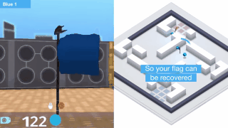 夺旗原本是一项广受欢迎的户外运动,被广泛的应用于电子游戏中。在一张给定的地图中,红蓝双方保护自己的旗子并抢夺对方旗子,5分钟时间内,夺旗次数最多的队伍获胜。在游戏中,还可以标记敌方队员并将其送回出生点。