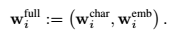 将character特征与word embedding拼接起来作为word encoder的输入: