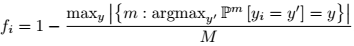 fi表示第i个词的不确定性,M = 100 independent dropout masks,P1, P2, . . . Pm: models,最后经过normalize,即