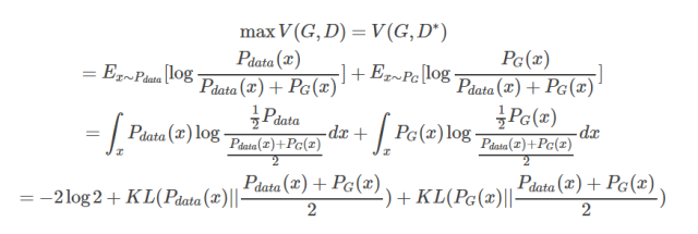 这个时候这个max值是由两个KL divergence构成的,相当于这个max的值就是衡量 PG(x)与Pdata(x)的差异程度,所以这个时候,我们取