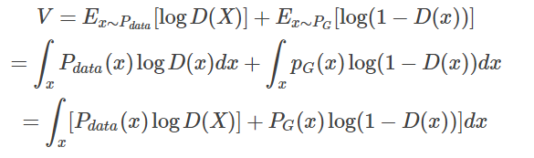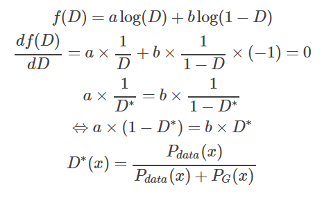 在数据给定,G给定的前提下, Pdata(x)与PG(x) 都可以看作是常数,我们可以分别用a,b来表示他们,这样我们就可以得到如下的式子