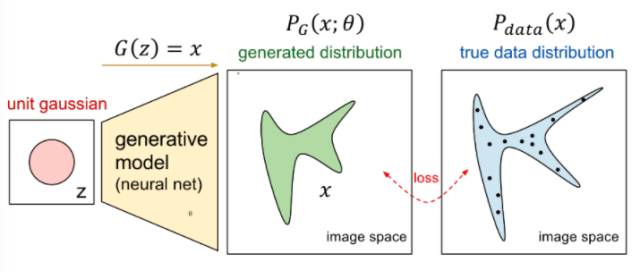 我们想要将一个随机高斯噪声z通过一个生成网络G得到一个和真的数据分布差不多的生成分布
