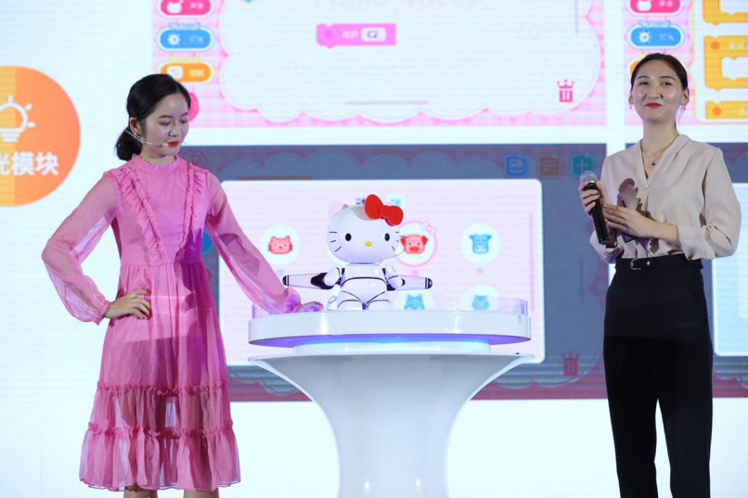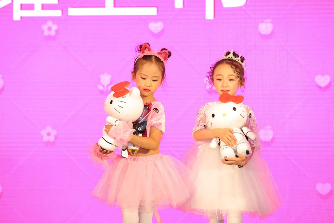 随着启动键被按下,舞台中央区域缓缓升起, Hello Kitty智能教育机器人的真身完全得以呈现。