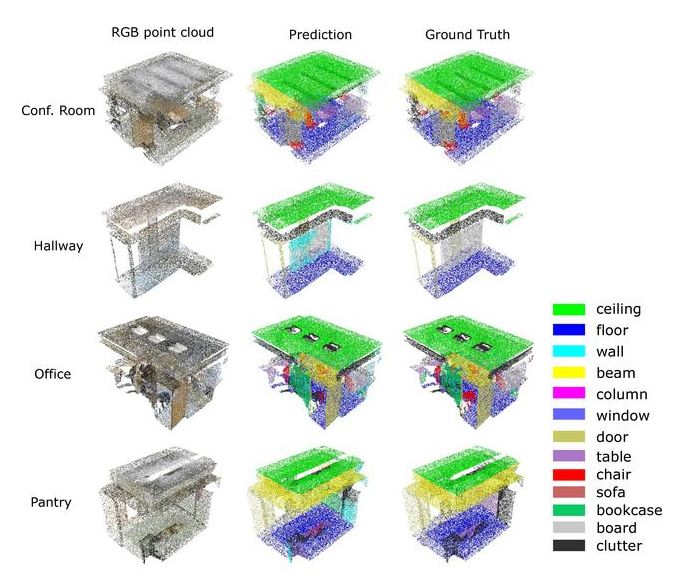 上海交通大学卢策吾团队 MVIG 实验室最近开源了 PointSIFT,这是一个点云特征的提取模块。在 Stanford Large-Scale 3D Indoor Spaces(S3DIS) [1] 中可以达到 70.23 的 mIoU(对比 PointCNN 62.74, 相对提高 11.9%)。在另一个常用数据集Stanford ScanNet [2]上可以达到 41.50 的 mIoU(对比 PointNet++ 38.28, 相对提高 8.1%)。