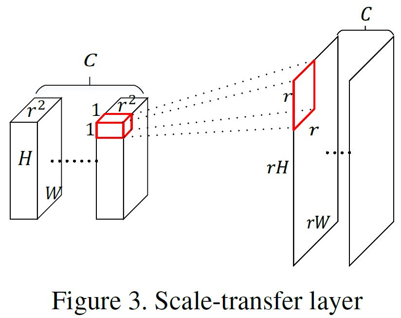 使用mean pooling获得低分辨率特征图是显而易见的,但是如何通过scale-transfer层获得高分辨率图呢,如下图: