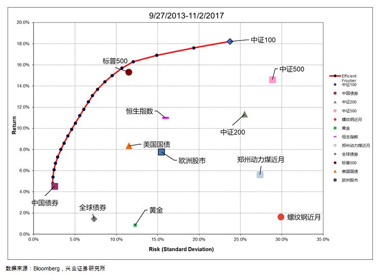 我们做了一个图,横轴是主要资产波动率风险,纵轴是收益率。这是用四年数据来看,中国的股票在以前性价比比较低,纵轴是收益率,核心的问题是看横轴,风险的话,波动率标普每年在10%左右,A股是将近25%。这就是A股为什么原来投资不挣钱,是因为波动率把收益吃掉了,这是核心的问题。不是说收益率不好,波动带来的问题是择时错误可能性上升了。