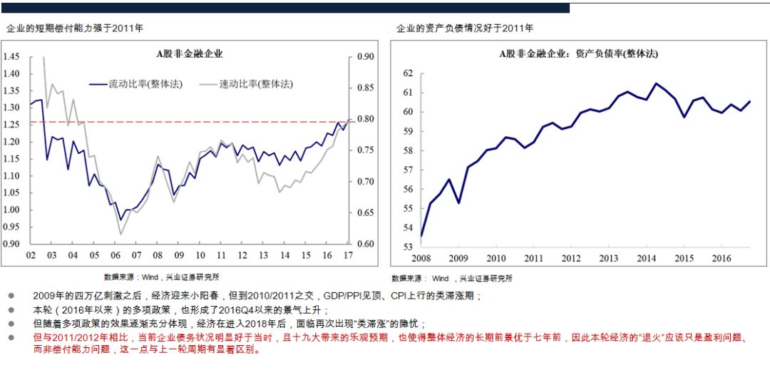 2009年借款主体主要是企业信贷,很多企业要还贷款本金,导致那个阶段企业压力特别大;但是这一轮从数据上去看,企业层面上资产负债表非常健康。因为这轮5万亿,2万亿的PPP是地方政府的债务,3万亿的棚改是国开行给的贷款。