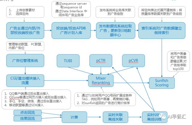 注:社交与效果广告(SPA)是腾讯的一个数据闭环系统,数据在系统中流动,并不断优化系统指标参数,这种类型的业务模式主要是搜索和广告,例如Google、百度 Facebook和阿里、腾讯SPA。SPA可以分成一些比较独立的平台系统,如广告播放与竞价平台、检索系统、点击回流与效果跟踪平台、模型训练与参数预测平台等分析系统。