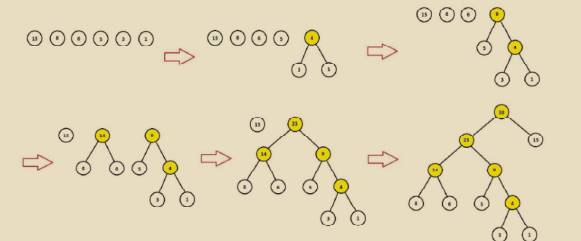 1.给定{15,8,6,5,3,1}为二叉树的节点,每个树仅有一个节点,那就存在6颗单独的树