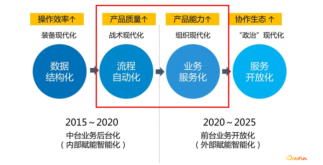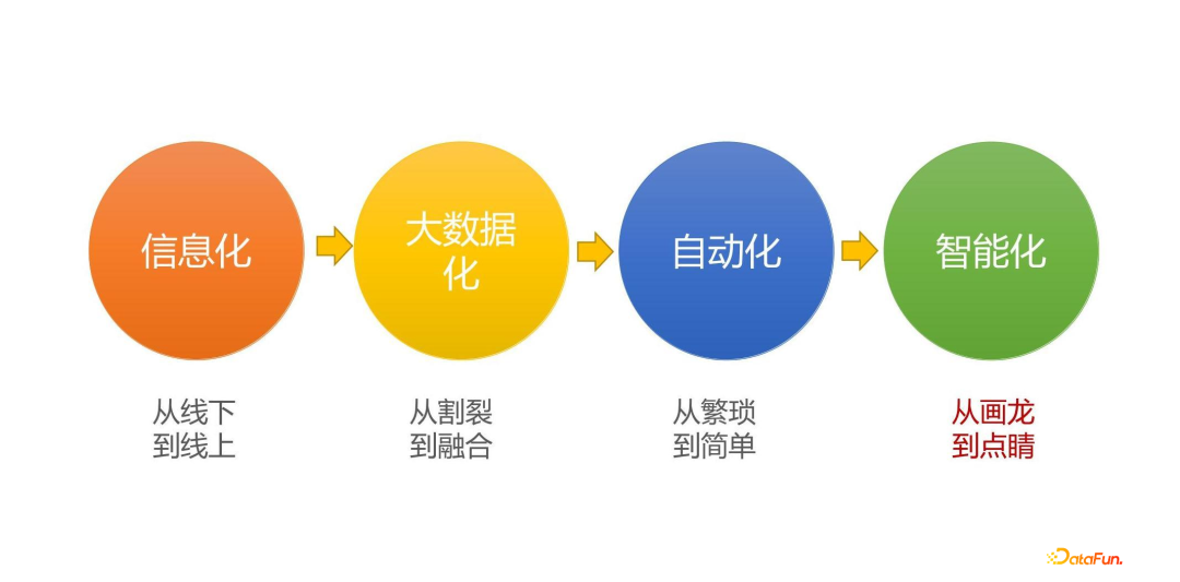 金融IT化的过程分为四个阶段,分别是信息化、大数据化、自动化、智能化。前面20年时间已完成信息化和大数据化的建设,2010到2016的5年时间已完成一些简单的自动化。因此到了2016年,我们就考虑是否需要智能化。