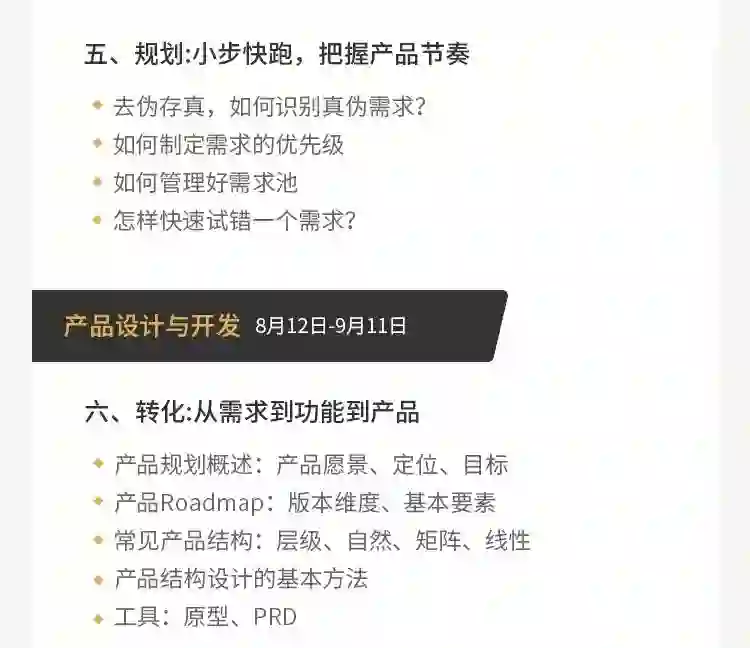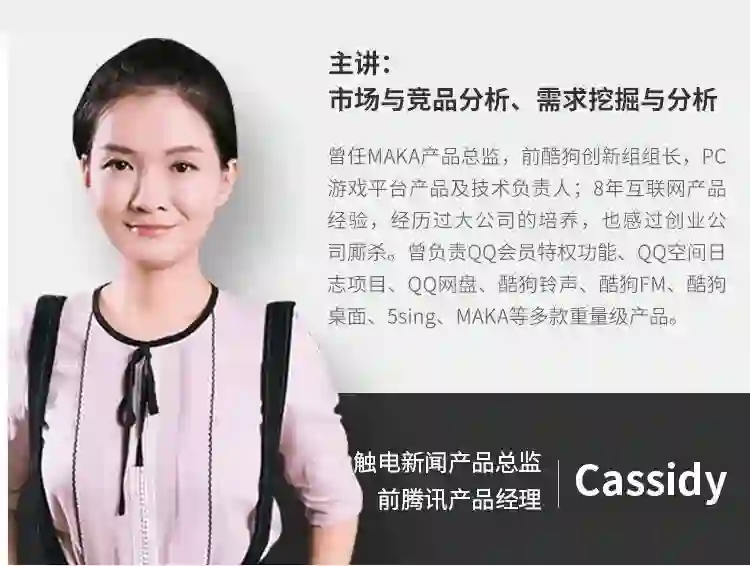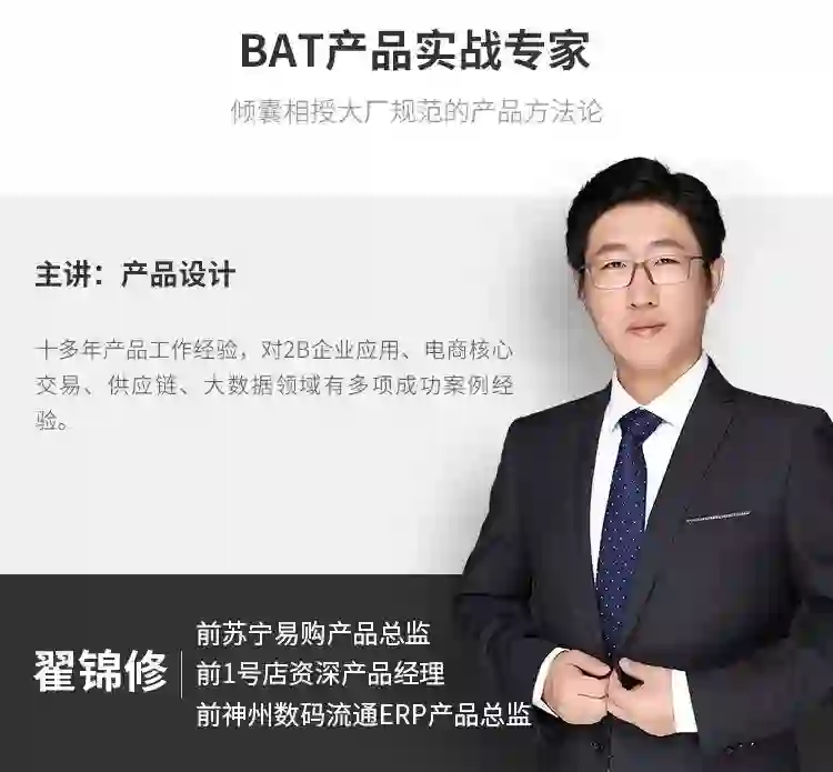 课程特地邀请BAT老师授课,亲身讲解千万级产品案例,拆解产品核心逻辑。