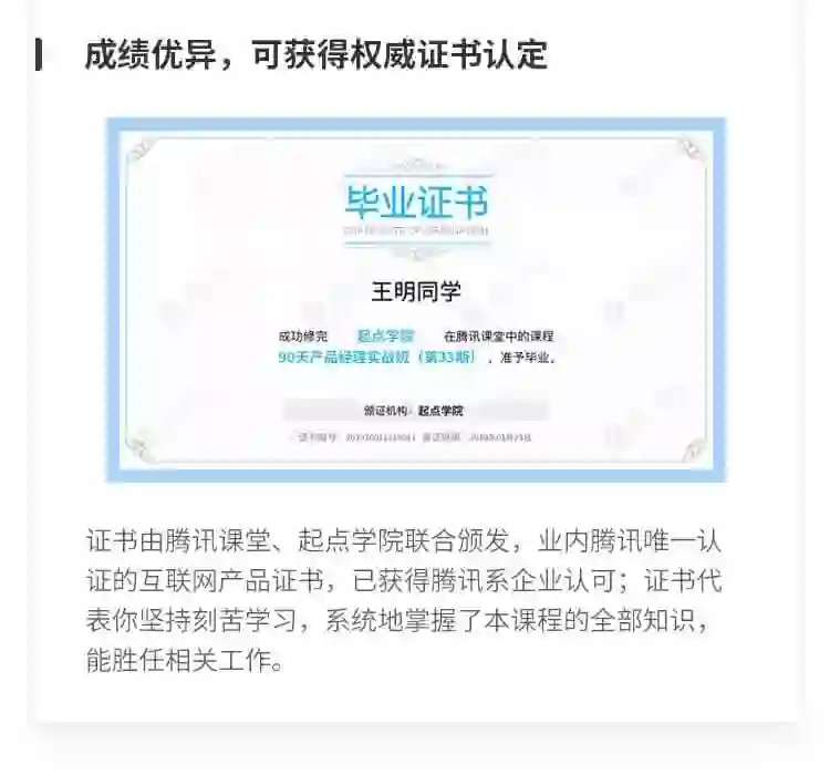 那么对于想转行的同学来说,想要缩短在执行层盲目探索的时间,早一步成为产品经理,还需要有方向的引导。推荐起点学院&腾讯课堂联合打造的“90天产品经理实战班”,可以帮到你。缩短独自探索的时间,节省时间和精力,更快更规范地上手产品工作。