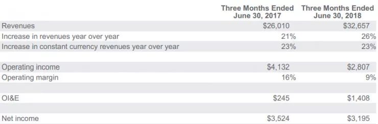 2018 Q2 的运营利润为 78.78 亿美元,占比 24%,这是一个健康的数字;