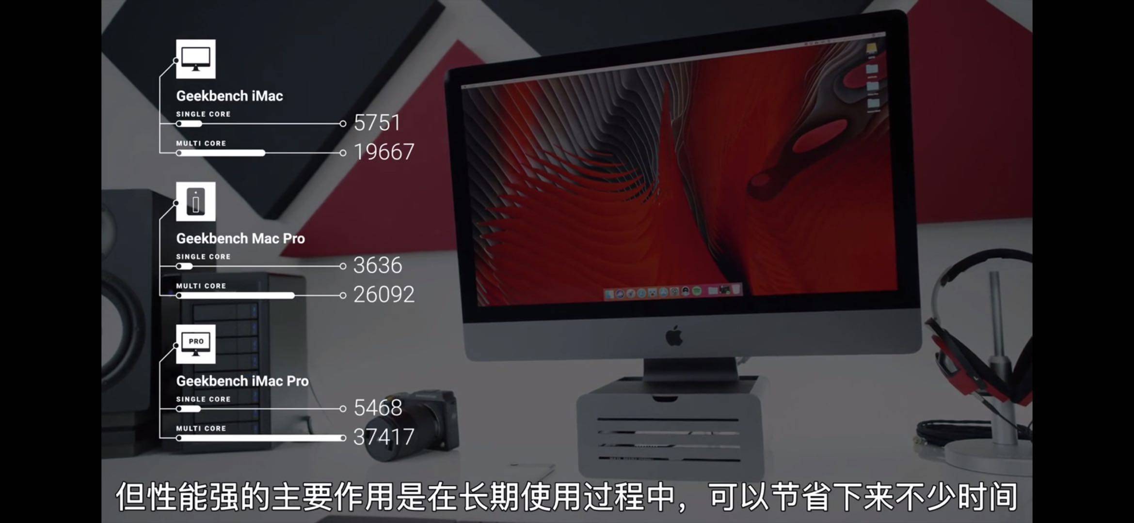 按照国外博主 MKBHD 的测试,中配版 iMac Pro 单核跑分为 5468 分,多核跑分为 37417 分,2TB SSD 的写入速度最快可达到 2996MB/s,而读取速度达到了 2450MB/s,毫无疑问这是目前性能最强的 Mac 系列产品。