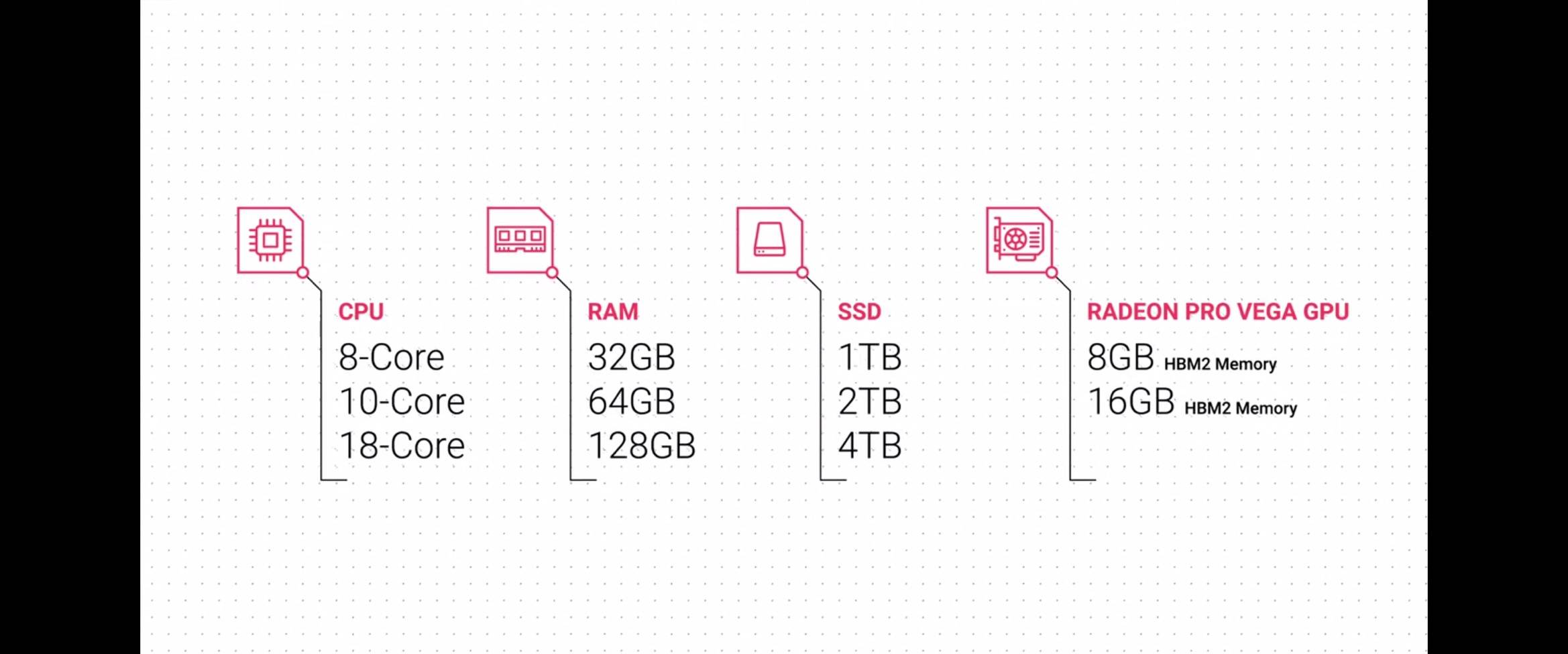 入门级别的 iMac Pro 用上了 5K 分辨率屏幕、Intel 的 8 核至强(Xeon)处理器,32GB EEC 内存,1TB 的 SSD,Radeon Pro Vega 56 显卡(8GB HBM2 显存),UHS-II SDXC 读卡器4 个 Thunderbolt 3 接口以及 10Gb/s 的「万兆」以太网接口。