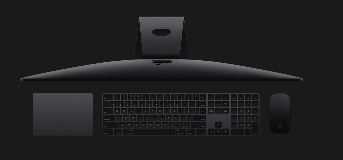 iMac Pro 在外观设计上对比 iMac 没有太多明显改变,但是整机颜色换成了现在这代 MacBook Pro 上使用的深空灰色。不止是机身,iMac Pro 配的键盘,鼠标和触控板也都是深空灰的颜色了。