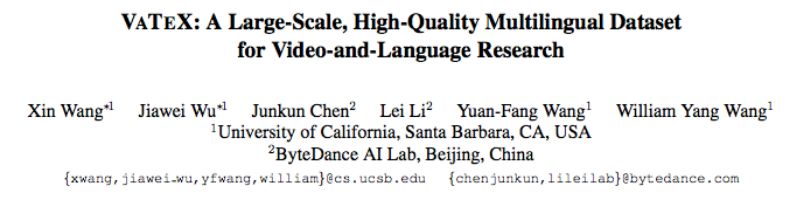 论文:VATEX: A Large-Scale, High-Quality Multilingual Dataset for Video-and-Language Research
