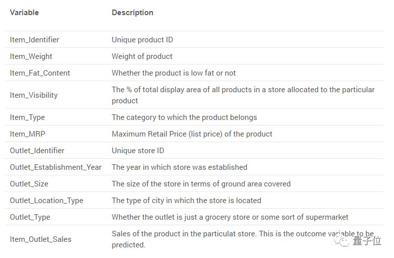 BigMart Sales数据集面临的挑战是建立一个预测模型来估算某个商店中每种产品的销售额。这将有助于BigMart决策者寻找每个产品或商店的特性,这对提高整体销售额起着关键作用。在给定数据集中,包括10个商店中的1559种产品。