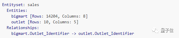 如上所示,它包含两个实体,为bigmart和outlet。这两个表之间也形成了一种关系,用Outlet_Identifier连接。这种关系将在生成新特征中发挥关键作用。