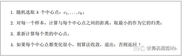 那现在字典的构建也就是一个描述子聚类的过程。聚类算法也有很多了,这里采用了K-means算法,其过程也很简单: