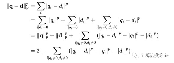 计算q和d两帧的差异(p表示范数,常取L1范数)
