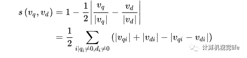 第二个等号进行了一个分类:只在q中有的单词、只在d中有的单词、在q、d中都有的单词。