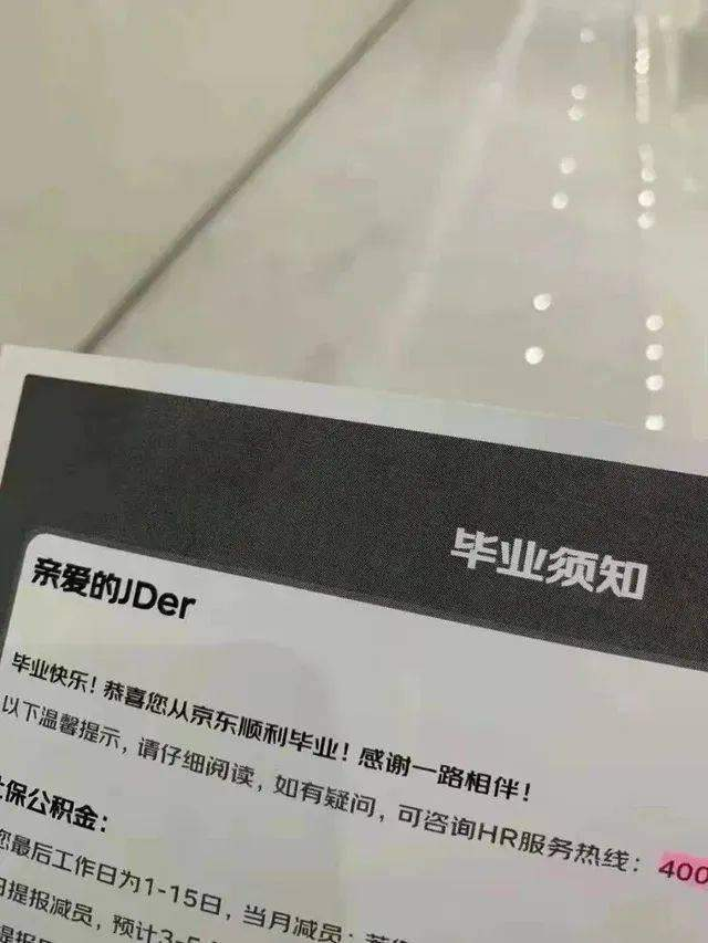 互联网大厂的“裁员潮”愈演愈烈。近日,社交平台上一份致京东员工的“毕业须知”引起热议。根据网友晒出的照片,京东 HR 将裁员信称之为“毕业须知”,并恭喜被裁员工从京东顺利毕业。