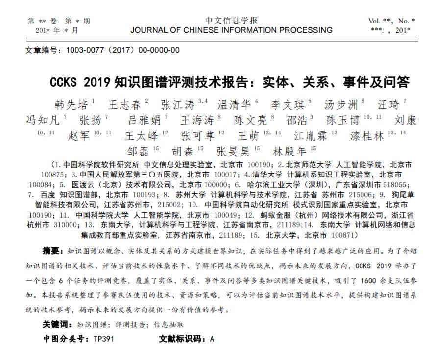 知识图谱以概念、实体及其关系的方式建模世界知识,在实际任务中得到了越来越广泛的应用。为了介绍 知识图谱的相关技术、评估当前技术的性能水平、了解不同技术的优缺点,揭示未来的发展方向,CCKS 2019 举办了 一个包含 6 个任务的评测竞赛,覆盖了实体、关系、事件及问答等多类知识图谱关键技术,吸引了 1600 余支队伍参 加。本报告系统整理了参赛队伍使用的技术、资源和策略,可以为评估当前知识图谱技术水平,提供构建知识图谱系 统的技术参考,揭示未来的发展方向提供一份有价值的参考。