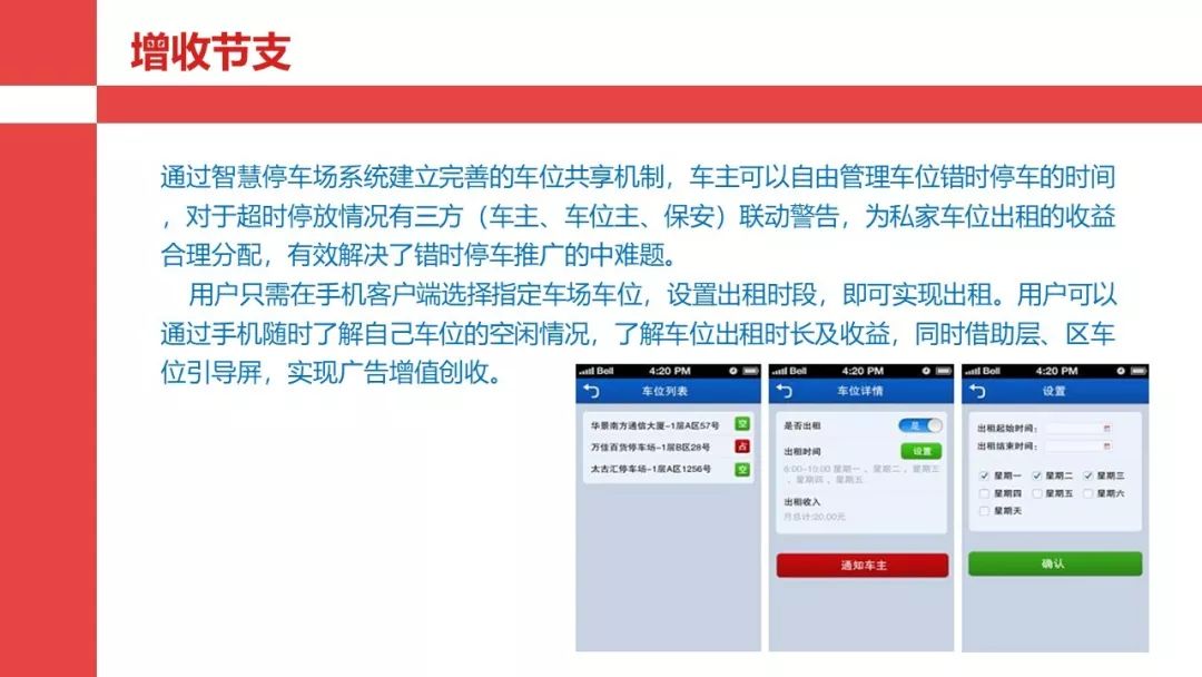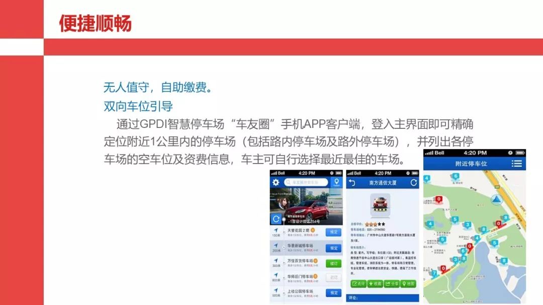 智慧停车是相对于刷卡和人工收费停车而言,比如一点停车系统,可以采用视频采集功能,和手机APP的线上查询和支付等功能,在停车的整个过程,都实现自动化和智能化管理和服务。