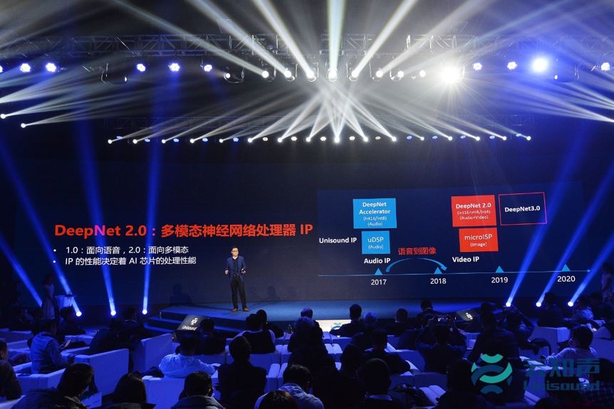 DeepNet 是云知声开发的深度神经网络处理器,DeepNet 1.0 面向语音技术,DeepNet 2.0 面向多模态,后者既支持图像处理,同时支持语音处理。目前云知声 DeepNet2.0 已在 FPGA 上得到验证,其算力将在 AI 芯片海豚 Leopard 上得以体现。