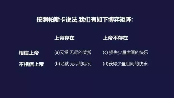 按照帕斯卡说法 ,有如下博弈矩阵: