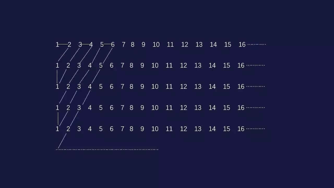 看下图,现在第一个旅游团有像自然数一样多的客人们,有无穷多个像第一个旅游团那样的旅游团们,你把这些客人重新编号,编成一个更大的无穷。