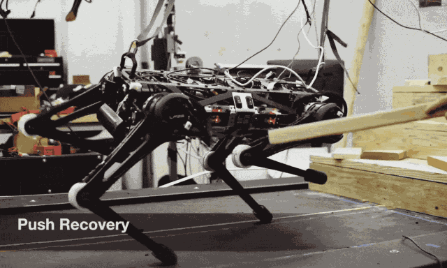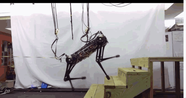 “我们想先做一个不需视觉的很好的控制器,”Kim说,“当我们为它增加视觉能力,即使可能反馈的是错误的信息,腿也应该能够处理(障碍)。因为如果它踩到了摄像机看不到的东西怎么办?它要怎样行动?这就是盲眼运动的作用。我们不想太过相信自己的视觉。”
