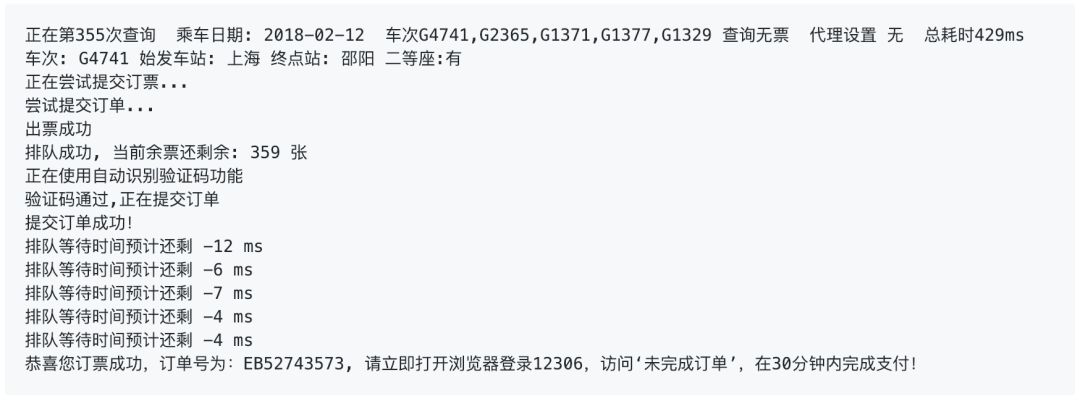 Python大本营第一时间联系到了该项目作者,并对其进行了简短采访。该作者表示,自己已经成功抢到了票,有图为证。