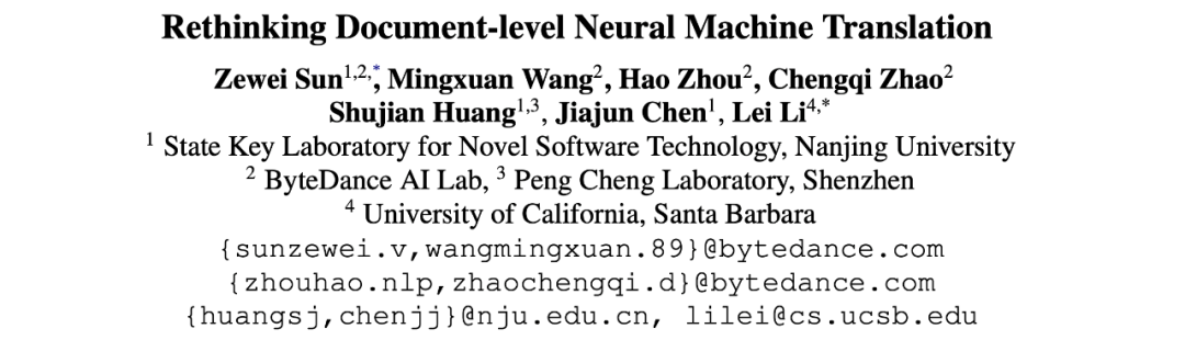如何在篇章翻译的过程中保持上下文的一致性,让机器表现得更像人类,是机器翻译的一个重要课题。今天就为大家介绍一篇由字节跳动 AI-Lab 火山翻译团队、南京大学与加州圣塔芭芭拉分校共同发表在 ACL 2022 的长文 —— Rethinking Document-level Neural Machine Translation。
