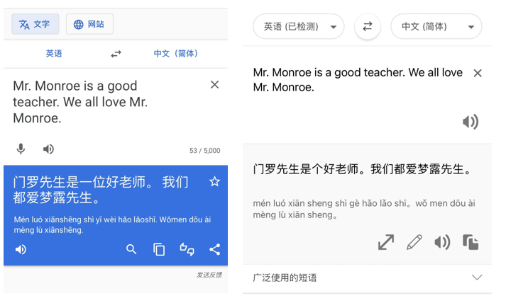 人类在翻译的过程中会保持上下文一致,比如翻译英文名「Monroe」,不会一会儿翻译成「梦露」,一会儿翻译成「门罗」,但许多商用机器翻译仍然会犯这种「低级错误」。