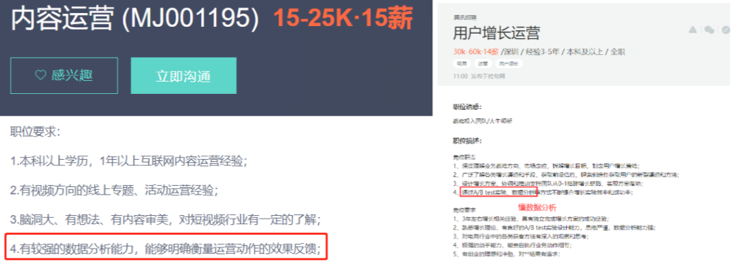 所以,我们现在看到的很多运营招聘岗位上,无论是什么品类的运营,都或多或少对数据分析能力有所要求——