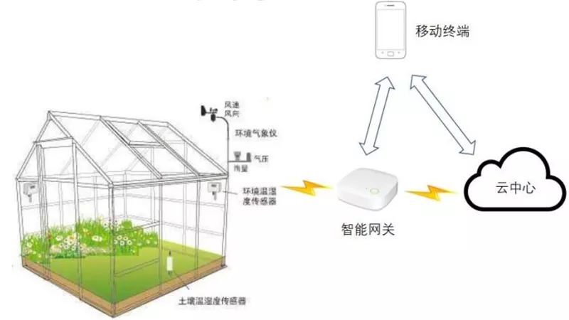 以智慧大棚为例:针对条件较好的大棚,安装有电动卷帘,排风机,电动灌溉系统等机电设备, 通过云端可实现远程控制功能。农户可通过手机或电脑登录云端系统,控制温室内的水阀、排风机、卷帘机的开关;也可在云端设定好控制逻辑, 云端将控制逻辑下放到边缘控制设备,边缘控制设备通过传感设备实时采集大棚环境的空气温度、空气湿度、二氧化碳、光照、土壤水分、土壤温度、棚外温度与风速等数据,自动根据内外情况自动开启或关闭卷帘机、水阀、风机等大棚机电设备。