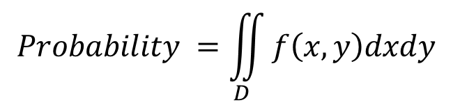 由于不能直接相乘,我们可以根据概率密度函数的定义,对其求二重积分进而算出概率,即: