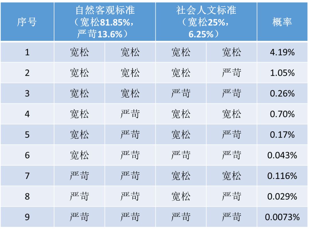 我们假设在两类标准中各选两个择偶标准,则共有9种不同的宽松组合。