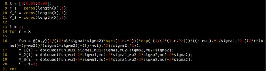 由于该积分无法直接求出解析解,我们使用matlab求定积分数值解: