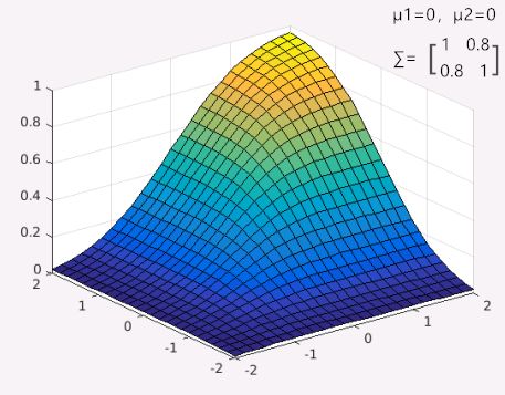 由于高维无法用图表示,我们示意性地画一个二维情况下的概率分布图像:
