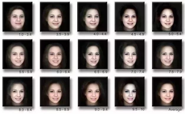 其中 y 是某个图像的分数, yi 是临近的图像,而 wi 则是对应的权重。经过实测,利用该算法为面部图像打分的结果与人类打分的结果最高有 0.65 的相关性。尽管这一数字还不够理想,但仍然提供了一个新的研究方向。