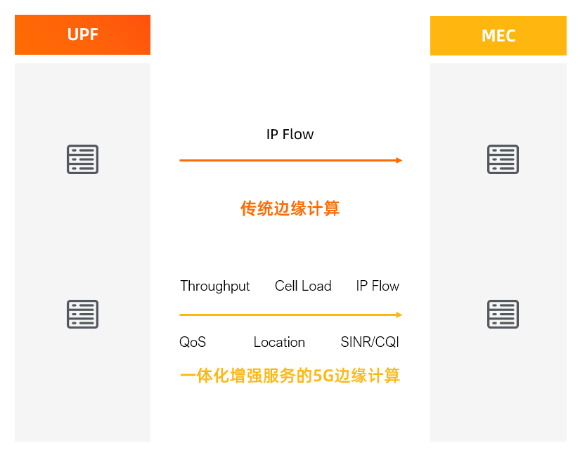 由于移动网络本身的架构特性,相对于传统的固网架构,移动网采用的是用户面流量和控制面管控两条腿走路的模式。边缘计算牵引的是用户面流量,但还可以通过与移动网交互从而获得更多控制面的信息,比如SINR,Cell Load等数据。这些控制面的数据可以给服务更多的能力组合,进一步增强边缘计算的对外服务能力,甚至能开拓出新的业务场景。